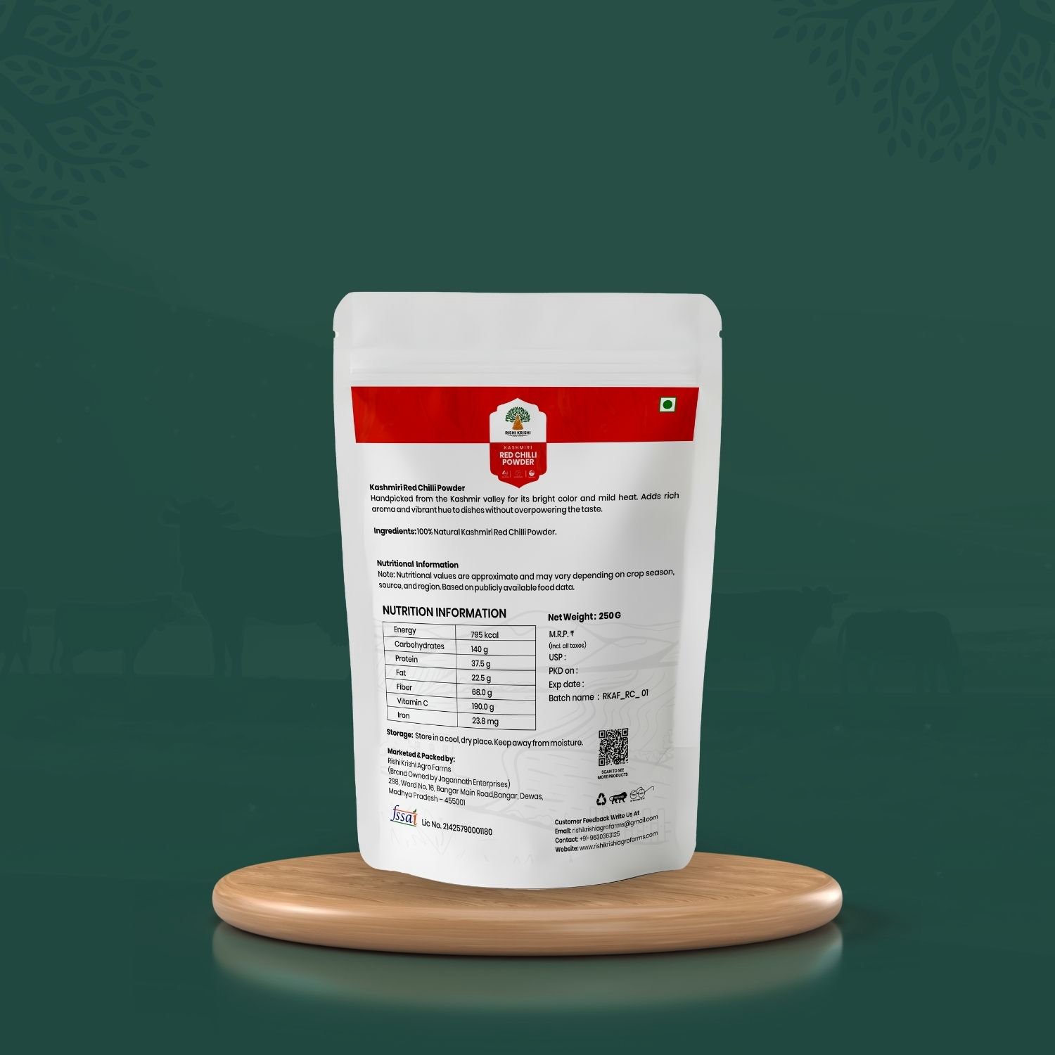 - Ingredients: Natural Kashmiri Red Chilli Powder.